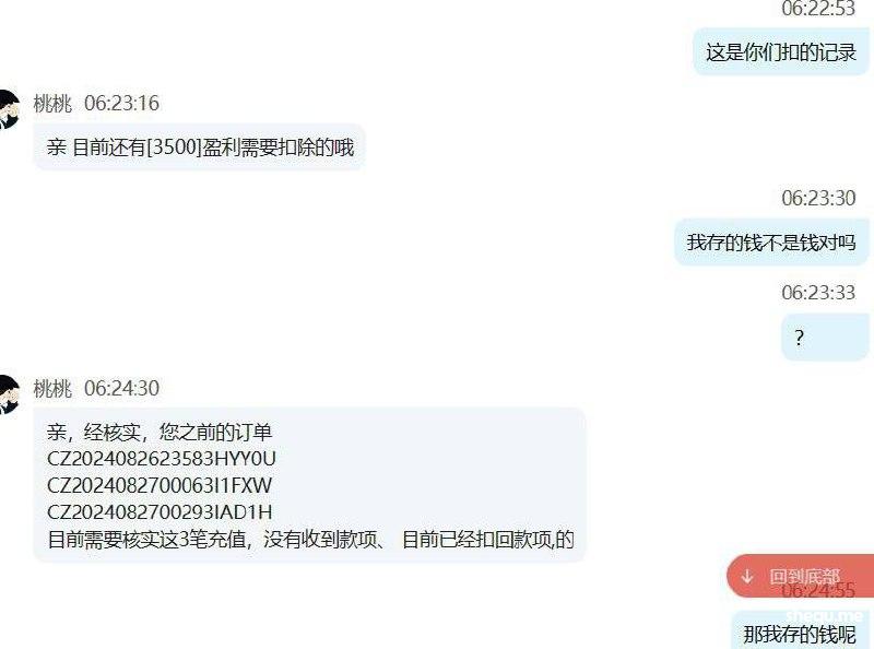 我在b体育因为银行卡问题,充值的3500元被系统冲正。当我打到5000元准备提款时,却迟迟不到账。等了三个多小时后,仍然没有收到款项,于是我联系了客服。结果他们告诉我,卡异常,钱已经退回,但要扣掉我的余额5000元。我同意让他们扣款,但之后再充值100元通过ebpay,打到3340元后,他们却不给我提款,将全部金额扣掉。