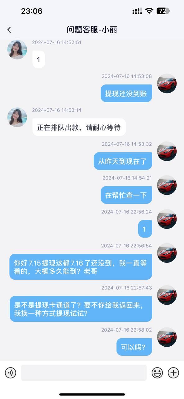 本人2024年7月3日 充值1000 打圆梦娱乐 然后陆陆续续玩了14天 慢慢的打到了1.7万,从7.3到7.14一直都在打电子,没有任何违规操作,现在账户余额1.7万,提现不给出款!直接把我卡在提现通道。找飞机圆梦合营部,客服回应提现问题 让我去找平台在线问题客服,平台客服不回复。我是7.15号凌晨12.03提现1507然后余额还有16000 平台客服回应 已提交出款 三方正在陆续打款中,请耐心等待 ,到了第二天我又问了在线客服 ,在线客服又回复了请耐心等待,今天都7.16号了还没到账,问客服要我上级的联系方式也不给,我现在找不到帮助,现在很无助 平台客服不回复 我也没有上级。我只玩PG电子任何违规都没有,哪里出问题了?不给出款是不是我充的太少了打上去了,你们要准备黑掉这个款?我玩这个7 8年了第一次被黑。赢了钱不给出输钱了怎么都行?格局能不能打开?才1万来块钱,5月15圆梦娱乐刚开的,这才不到2个月 这么大的公司。1.7万都准备要黑了吗?给出款就给出款,不给出款说就行了,一直躲避问题,没人处理?一个平台连一点信誉都没有以后谁还敢玩?