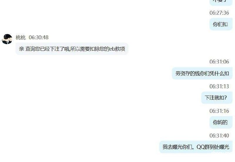 我在b体育因为银行卡问题,充值的3500元被系统冲正。当我打到5000元准备提款时,却迟迟不到账。等了三个多小时后,仍然没有收到款项,于是我联系了客服。结果他们告诉我,卡异常,钱已经退回,但要扣掉我的余额5000元。我同意让他们扣款,但之后再充值100元通过ebpay,打到3340元后,他们却不给我提款,将全部金额扣掉。